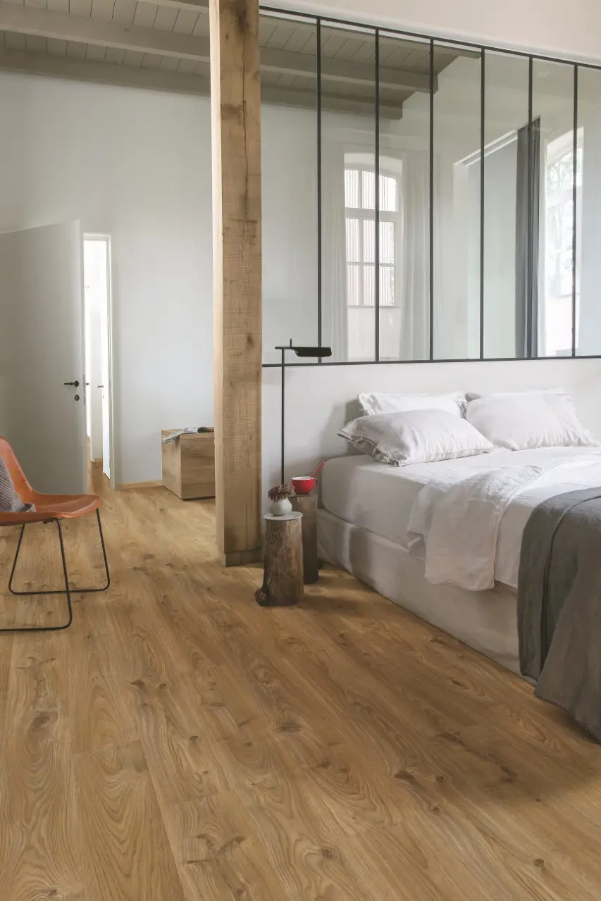 Montáž na klíč Vinylová podlaha  Quick Step LIV je velmi odolná díky utěsněné povrchové vrstvě, která pomocí technologie Stain Guard a Scratch Guard zaručuje vynikající ochranu před poškrábáním, oděrkami, skvrnami a jinou nečistotou. Výborná voděodolnost této podlahy nám poskytuje možnost použít luxusní vinylové podlahy do jakékoliv místnosti i do koupelen a kuchyní. Snadný úklid podlahy zaručuje voduodpudivá vrstva. Tato podlaha je tichá můžete po ni chodit v botech a neušlyšíte téměř nic. Současně je tato podlaha teplá, proto po ni můžete chodit i naboso. Voděodolnost