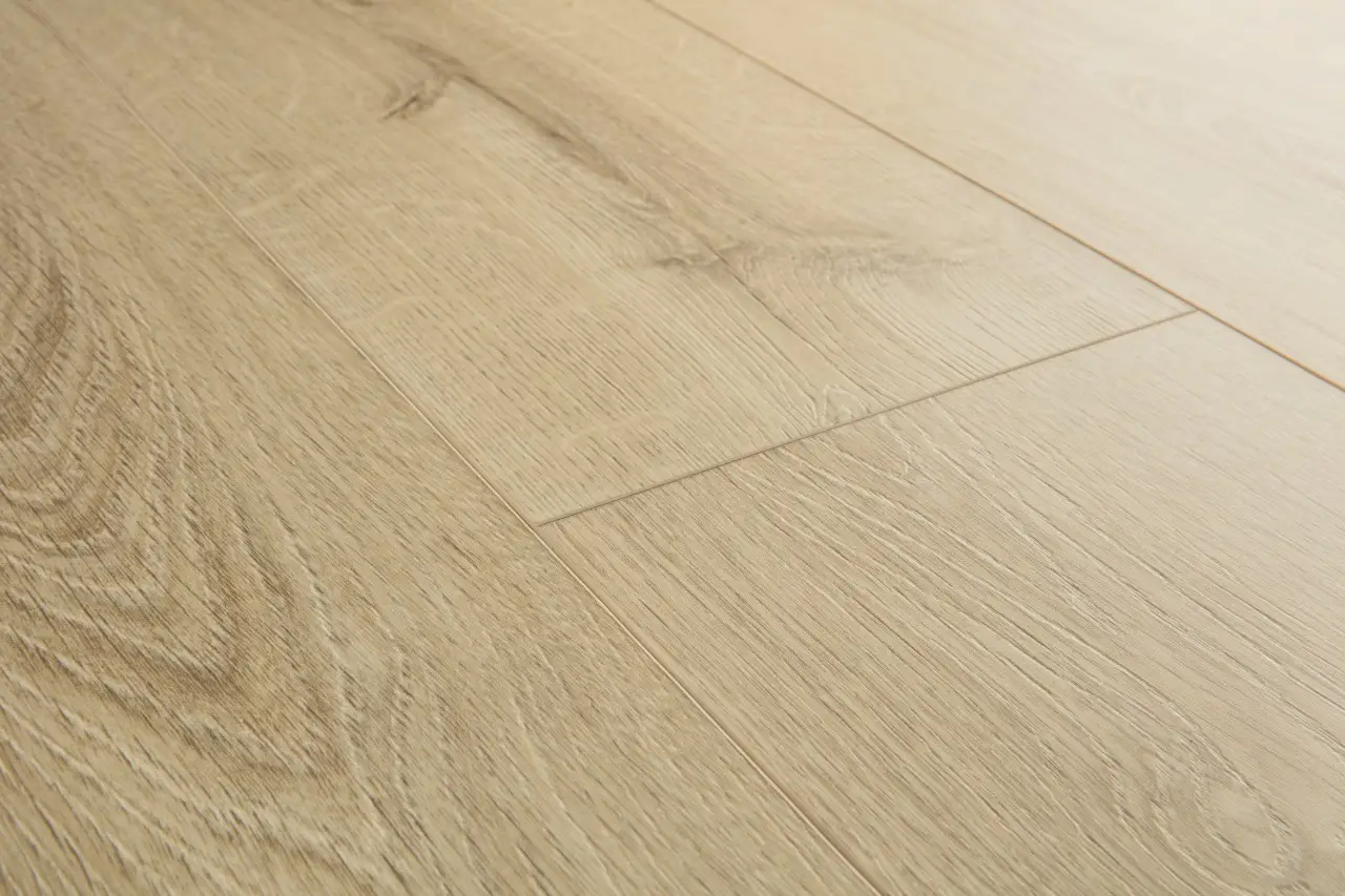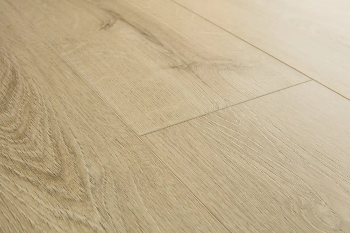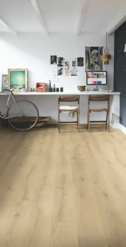 Vinylová podlaha  Quick Step PRISTINE je velmi odolná díky utěsněné povrchové vrstvě, která pomocí technologie Stain Guard a Scratch Guard zaručuje vynikající ochranu před poškrábáním, oděrkami, skvrnami a jinou nečistotou. Výborná voděodolnost této podlahy nám poskytuje možnost použít luxusní vinylové podlahy do jakékoliv místnosti i do koupelen a kuchyní. Snadný úklid podlahy zaručuje voduodpudivá vrstva. Tato podlaha je tichá můžete po ni chodit v botech a neušlyšíte téměř nic. Současně je tato podlaha teplá, proto po ni můžete chodit i naboso. Kompatibilní s podlahovým vytápěním Voděodolnost