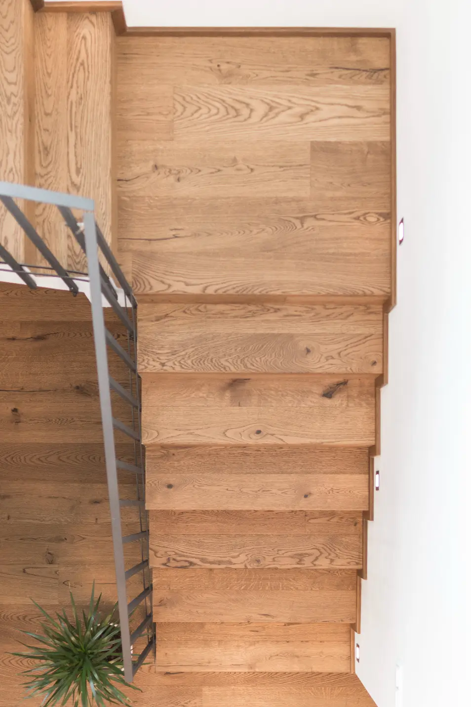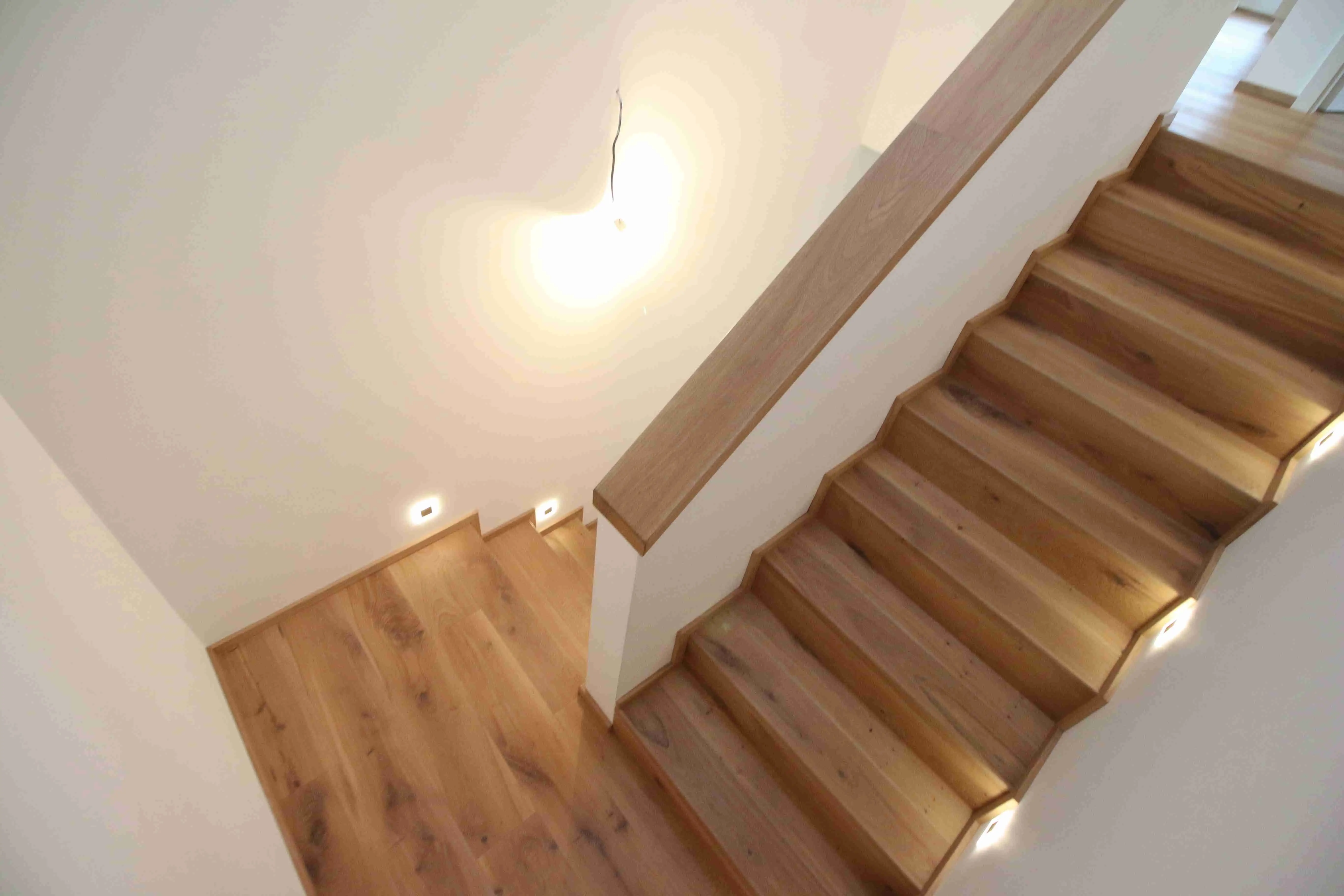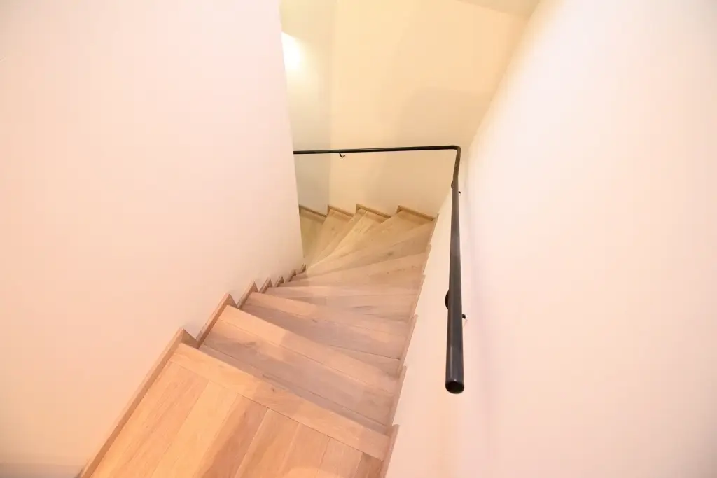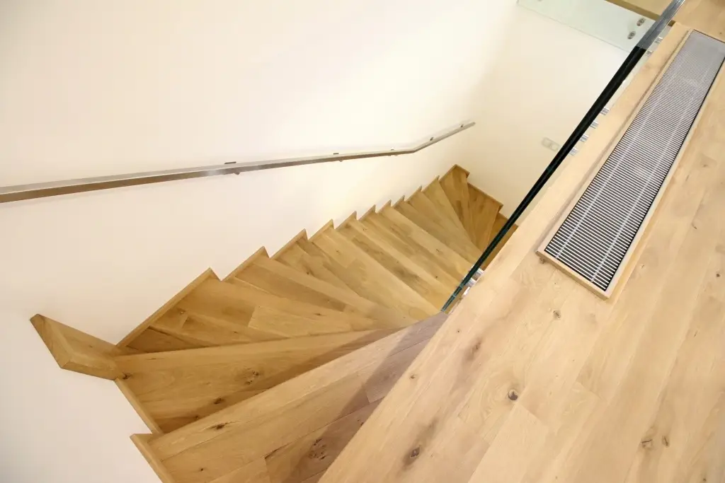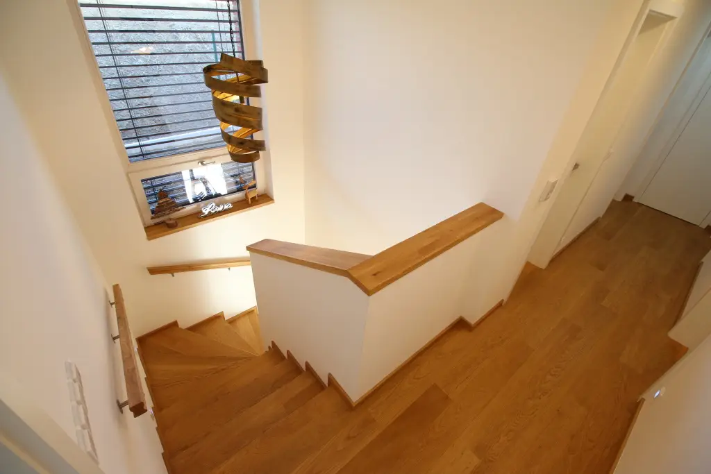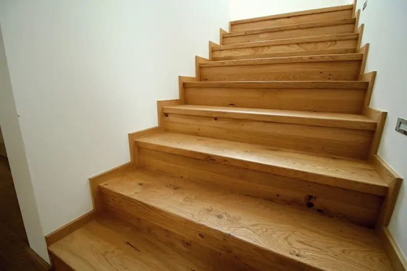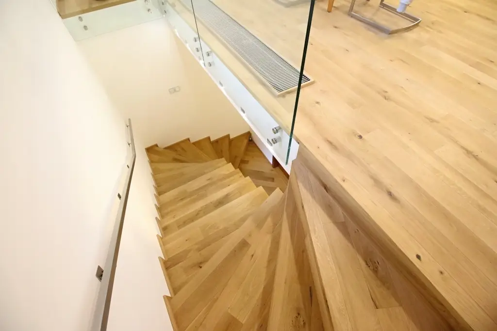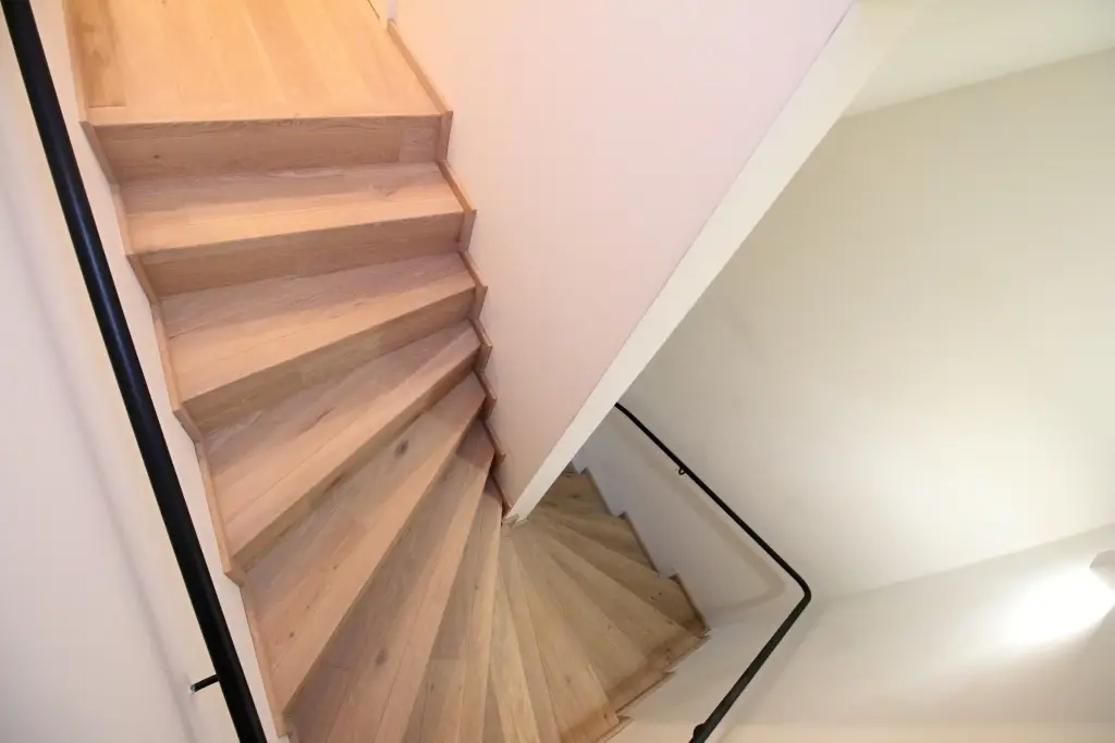 Co se týče výchozího typu obkladu, kterou při výrobě používáme, tak nejčastěji se jedná o vícevrstvé obklady používané také jako podlahová krytina do dalších prostor domu. Všechny výchozí dřevěné krytiny jsou vyvzorovány v našem pražském showroomu. Zde je k vidění i konkrétní zpracování dřevěného schodiště.
