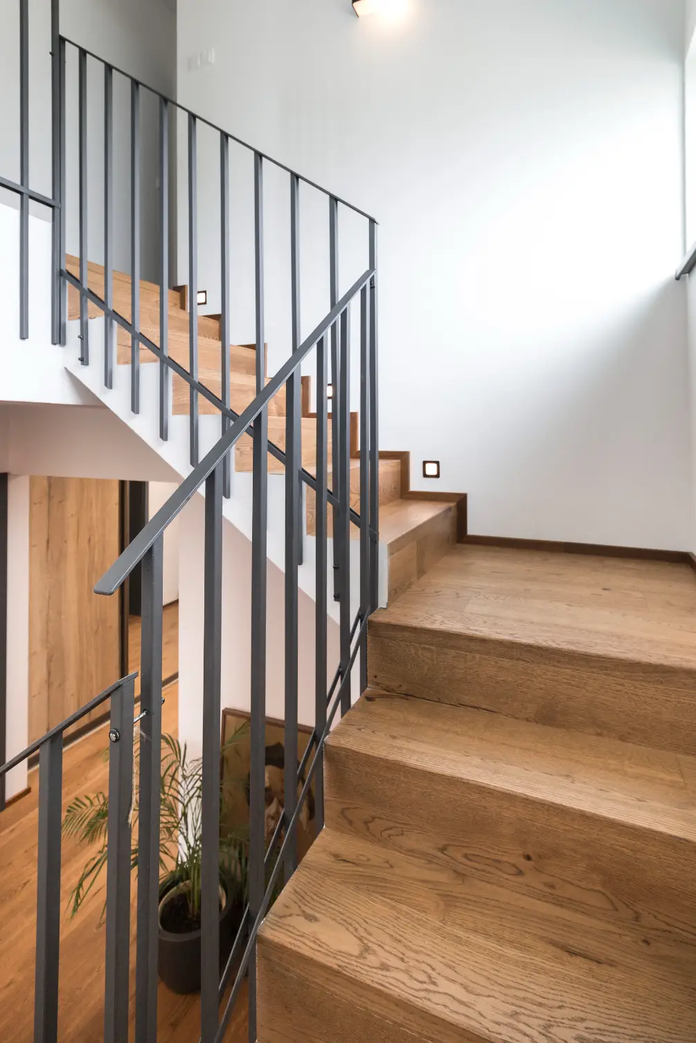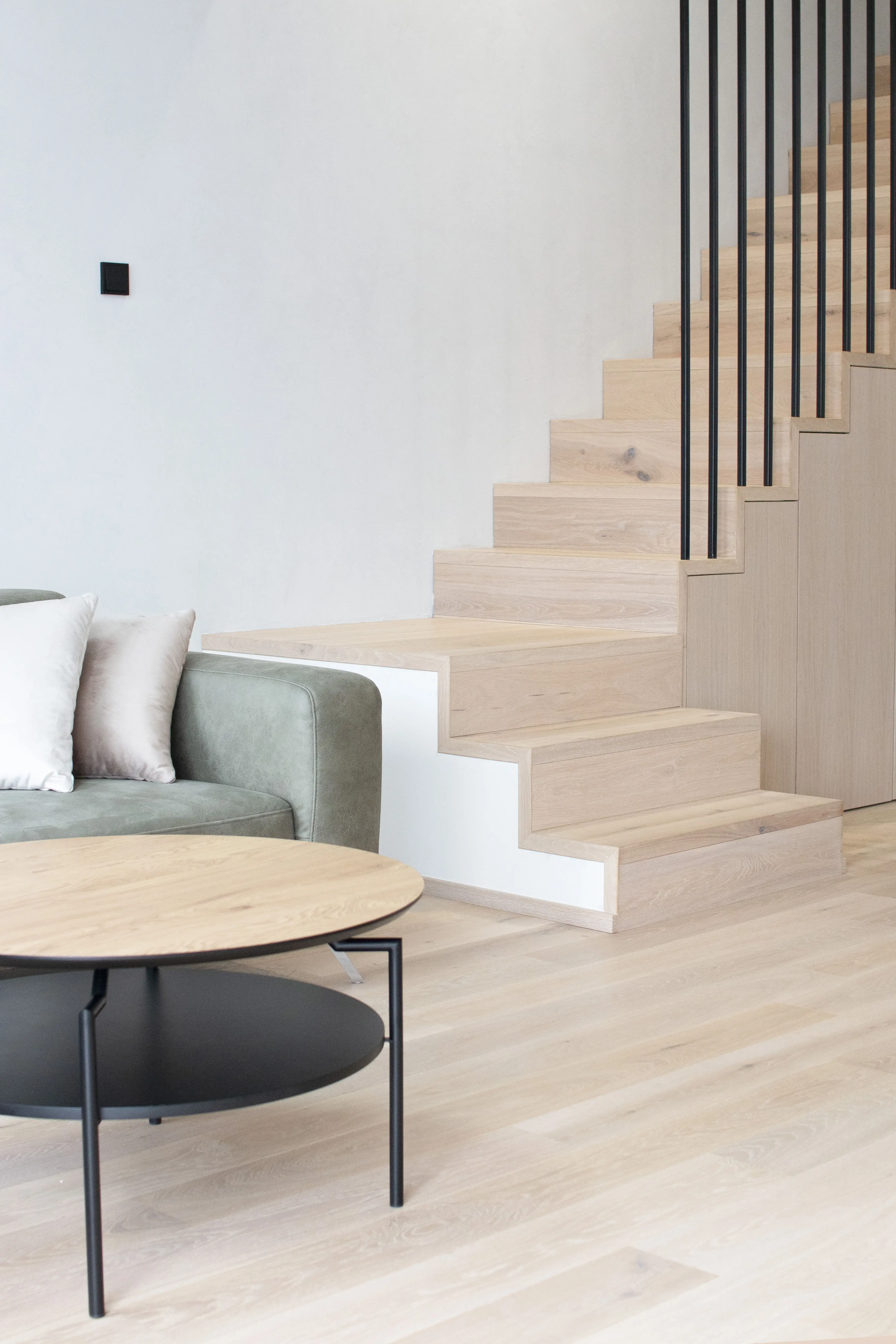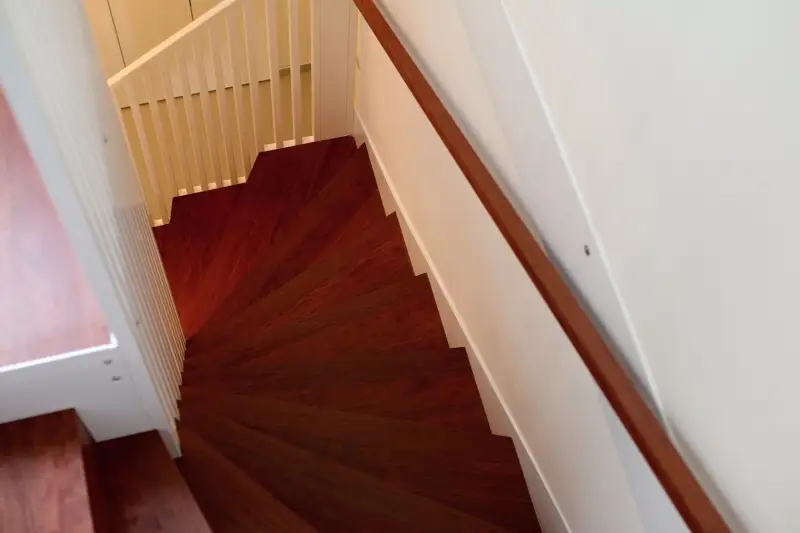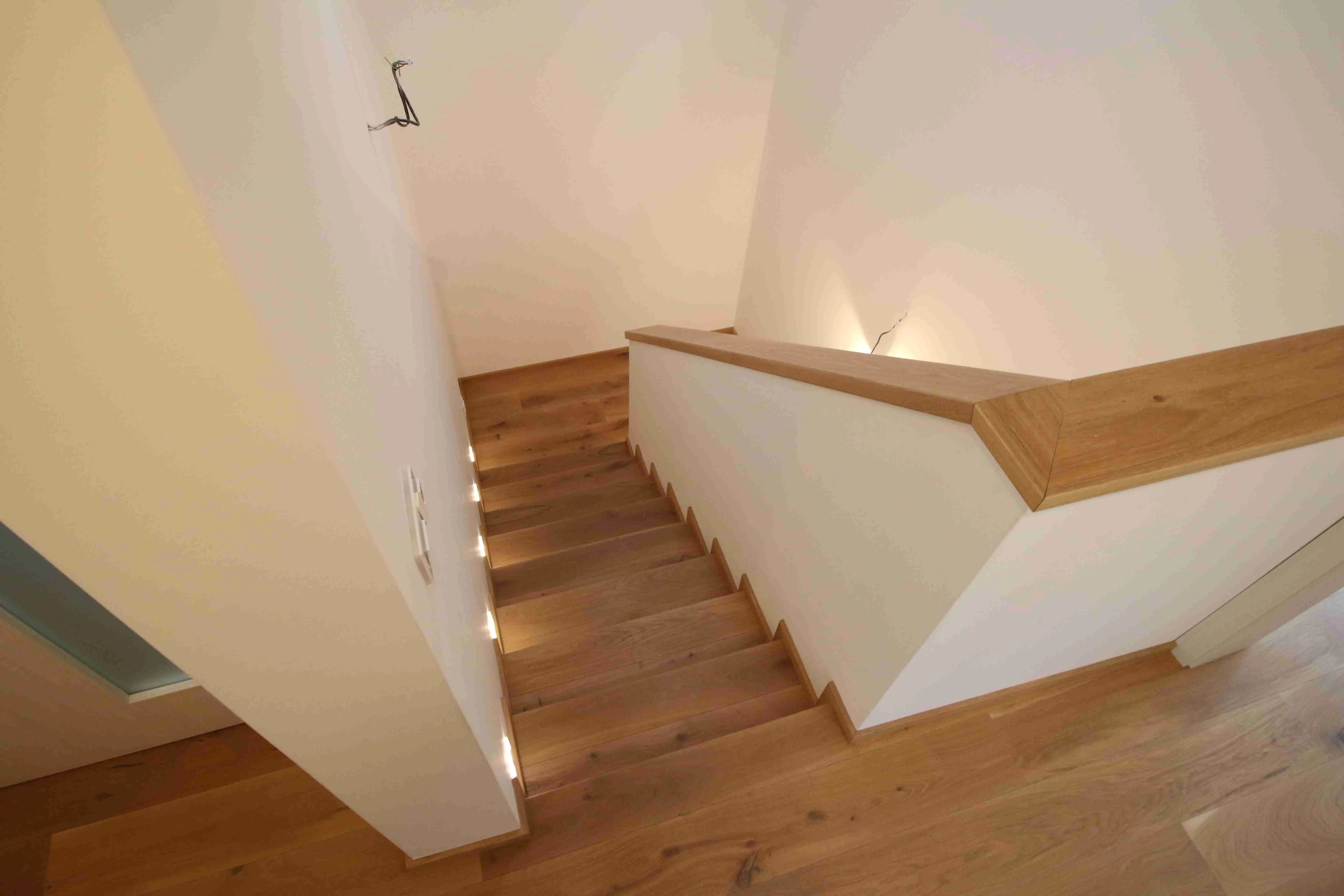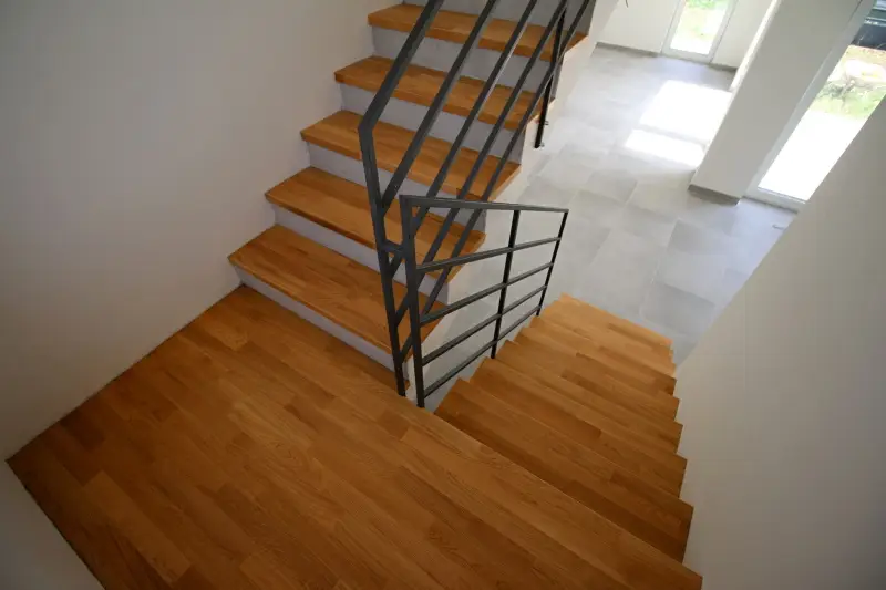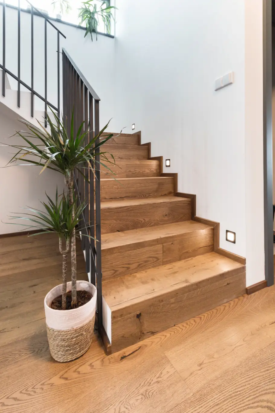 Co se týče výchozího typu obkladu, kterou při výrobě používáme, tak nejčastěji se jedná o vícevrstvé obklady používané také jako podlahová krytina do dalších prostor domu. Všechny výchozí dřevěné krytiny jsou vyvzorovány v našem pražském showroomu. Zde je k vidění i konkrétní zpracování dřevěného schodiště.