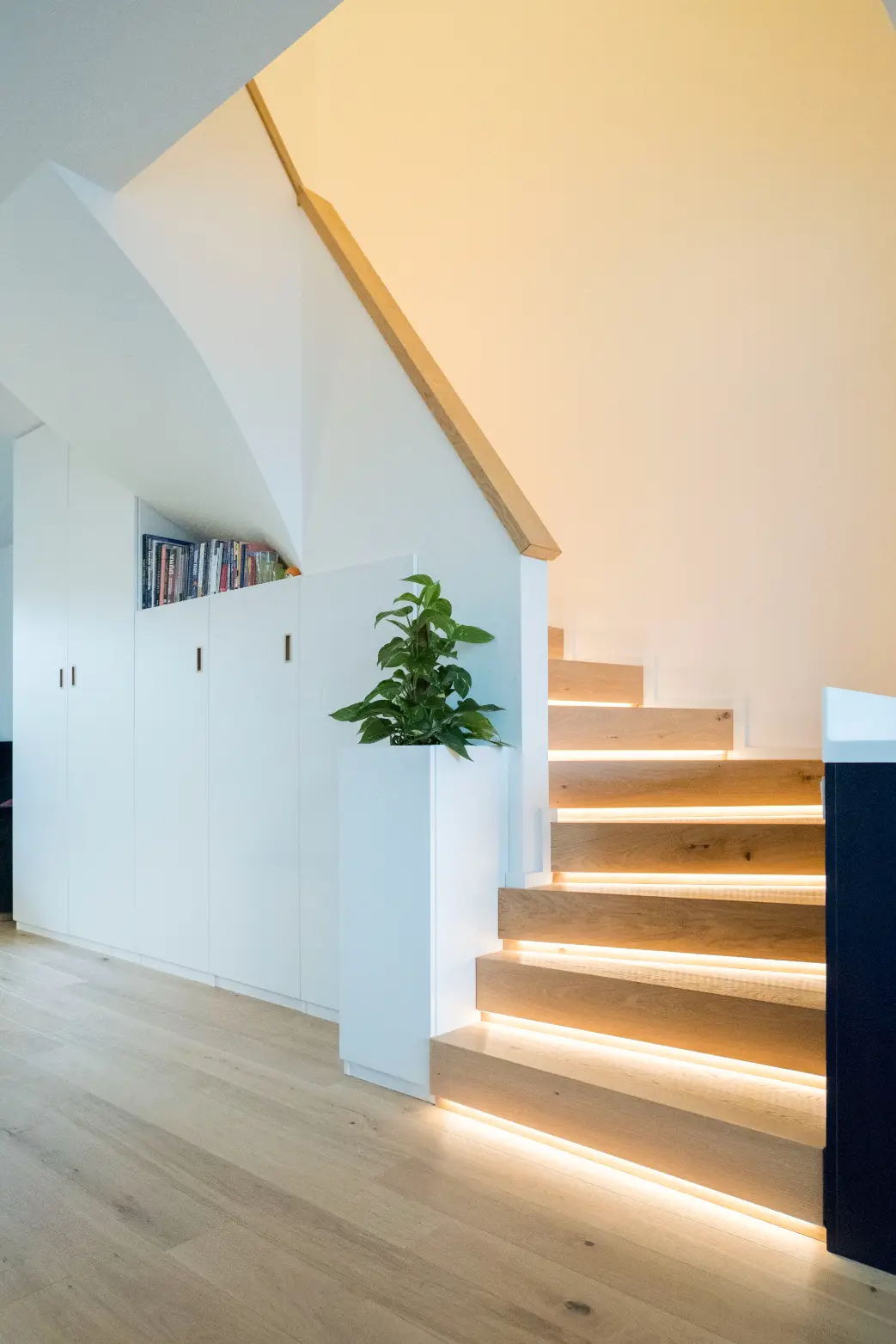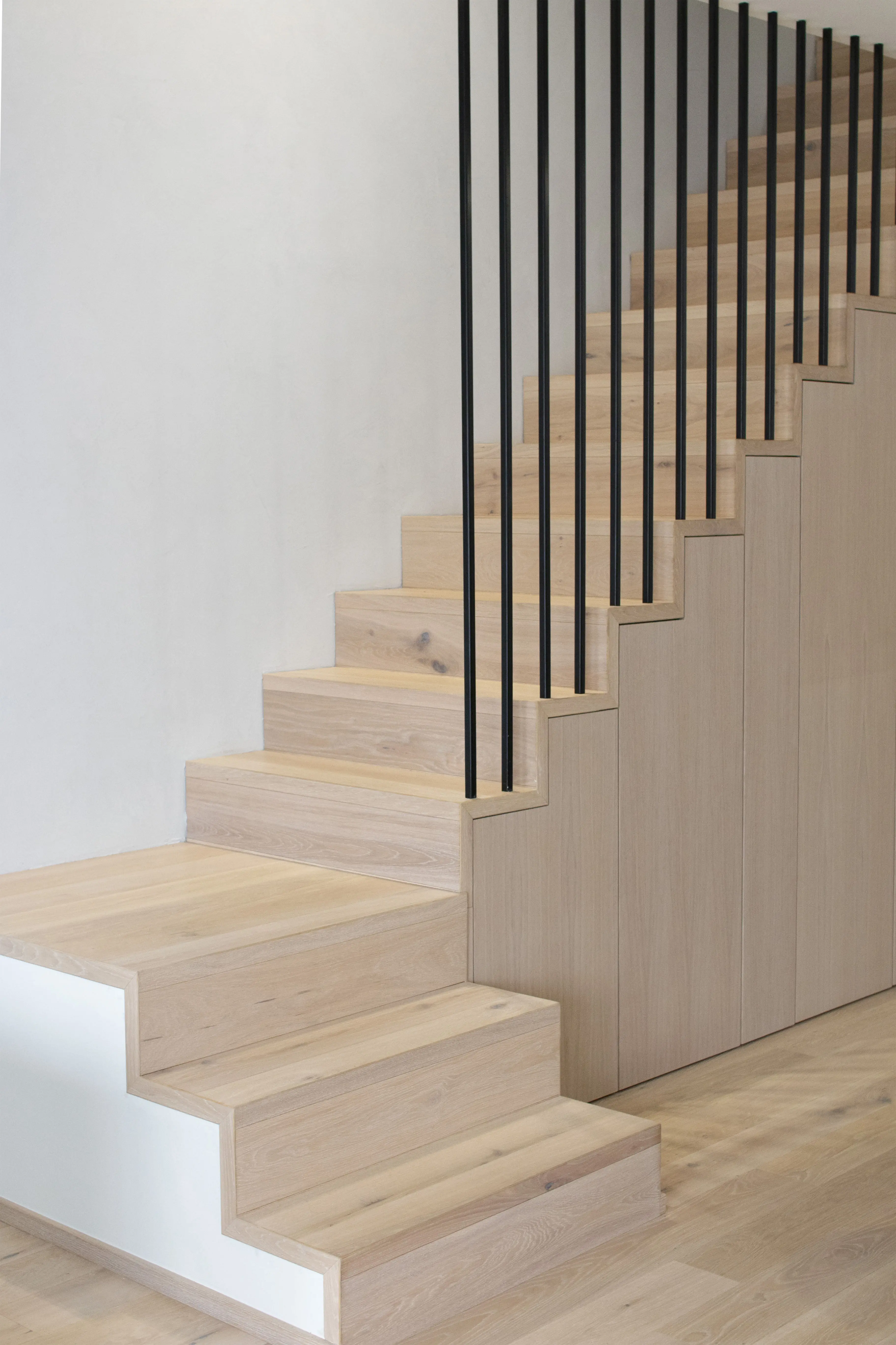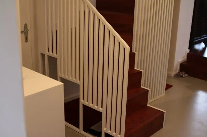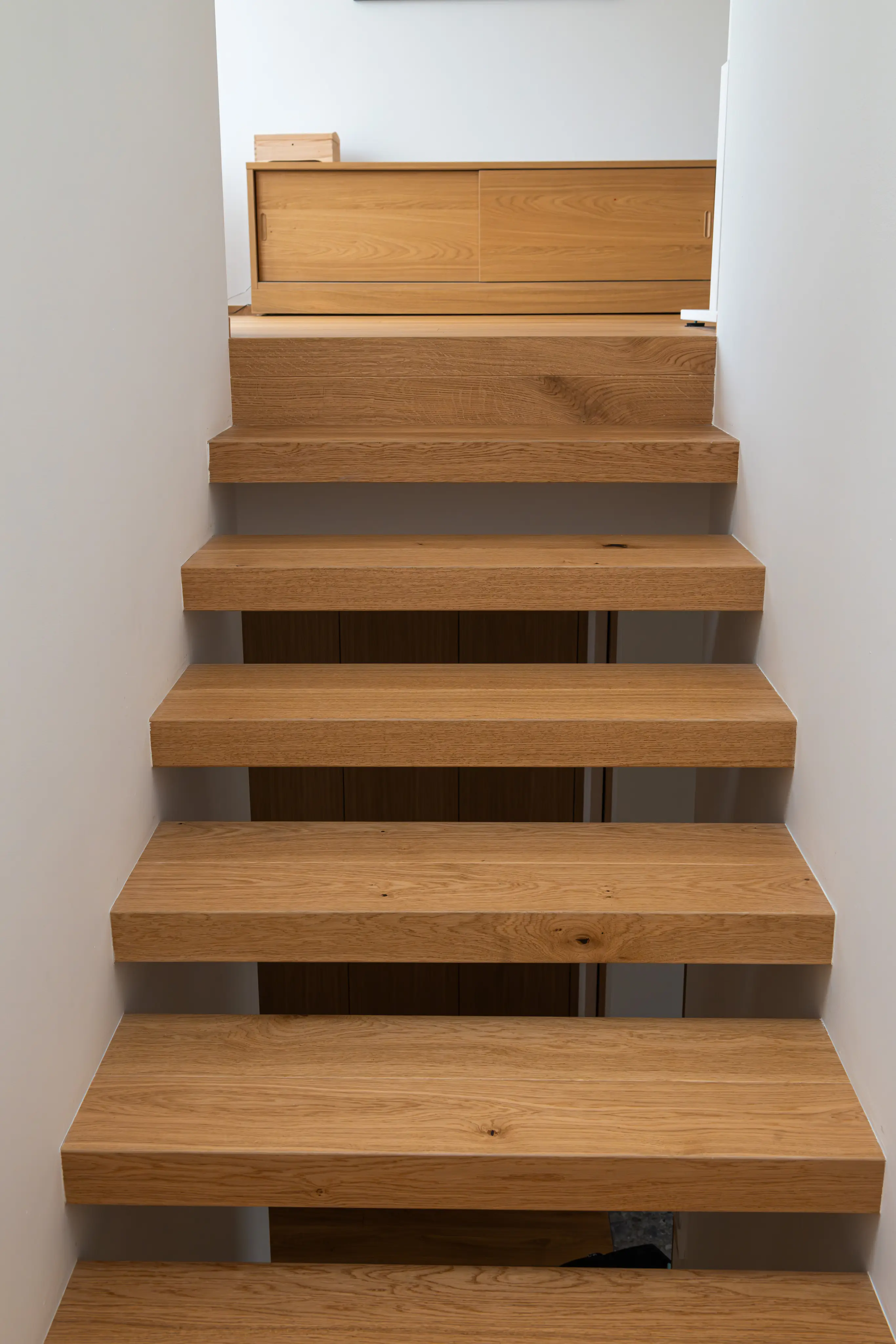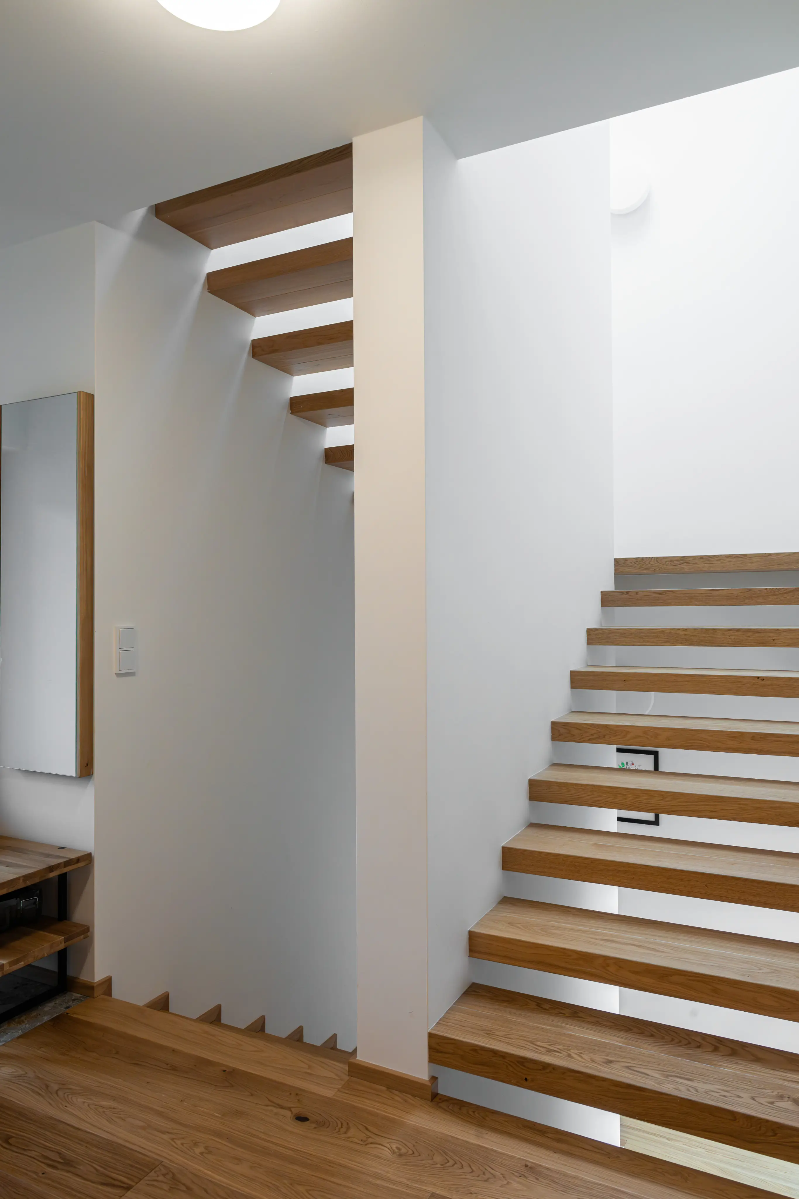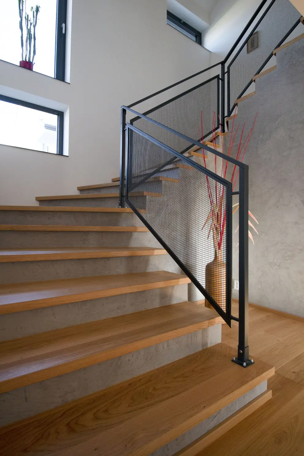 Co se týče výchozího typu obkladu, kterou při výrobě používáme, tak nejčastěji se jedná o vícevrstvé obklady používané také jako podlahová krytina do dalších prostor domu. Všechny výchozí dřevěné krytiny jsou vyvzorovány v našem pražském showroomu. Zde je k vidění i konkrétní zpracování dřevěného schodiště.