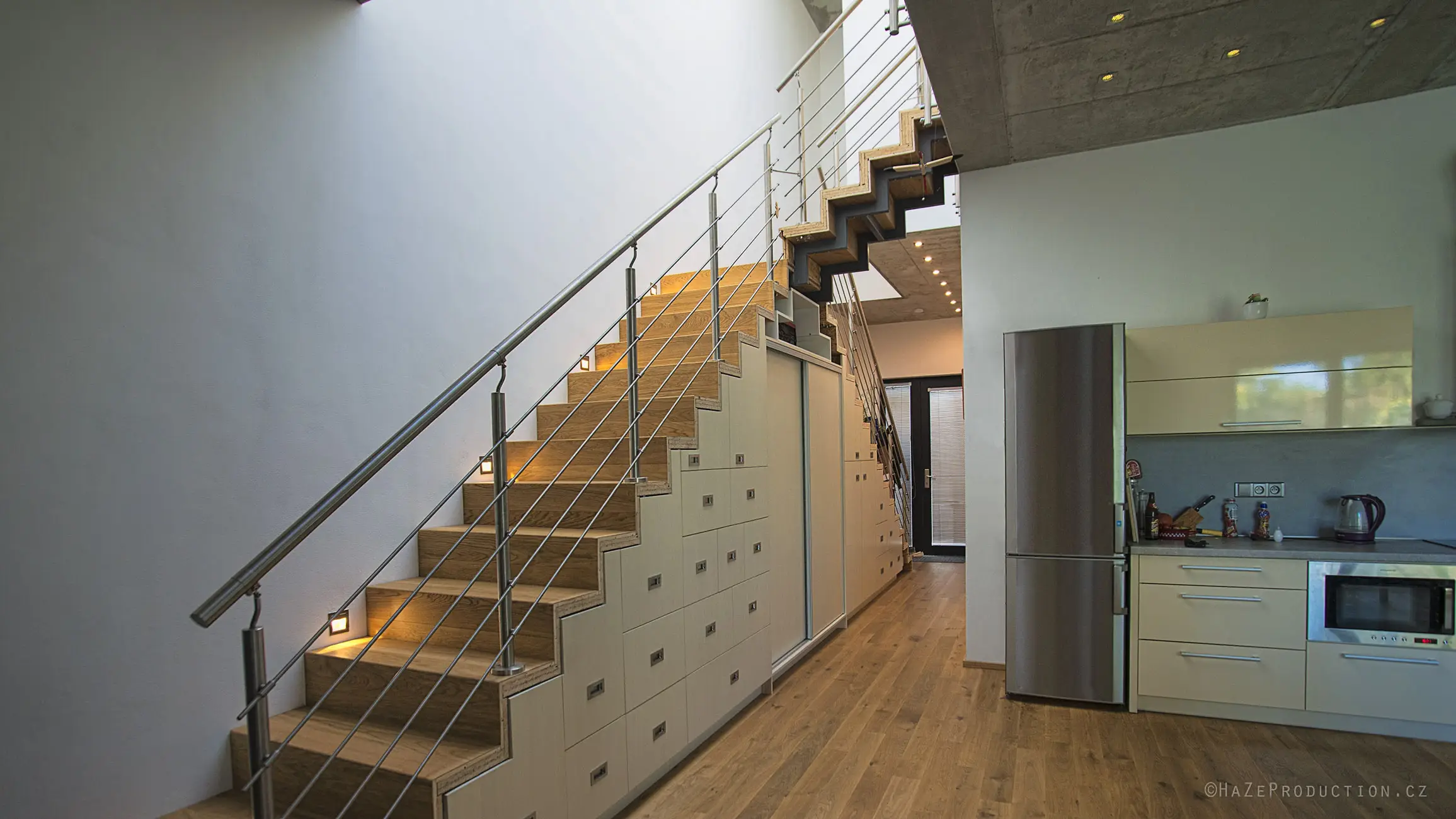 Schody ze dřeva jsou nestárnoucí klasikou, prvkem, který zapadne do každého interiéru. Skvěle se kombinují s dalšími materiály, jako je kov nebo sklo. Dřevo je zcela přírodní materiál, dodává prostředí punc kvality a hřejivost. Zároveň neobsahuje žádné chemikálie a umělé látky, je tedy perfektně vhodné pro alergiky, astmatiky a děti. Může se zdát, že dřevo není vhodným materiálem pro kombinaci s podlahovým topením, nejproblematičtější je v tomto případě masiv, který může klást vysoký tepelný odpor a zároveň pracovat – sesychat a roztahovat se. Tento problém ale není neřešitelný, stačí využít vícevrstvých dřevěných podlah. Při správném provedení jsou k nerozeznání od masivu, jsou ale daleko stabilnější a poskytují příznivější hodnoty tepelného odporu. Konkrétně u třívrstvých podlah se dokonce nabízí i pokládka stejným způsobem jako u plovoucích podlah, tedy bez využití lepidla. I bez použití podlahového topení je ale dřevo poměrně hřejivé a příjemné pro chůzi naboso.